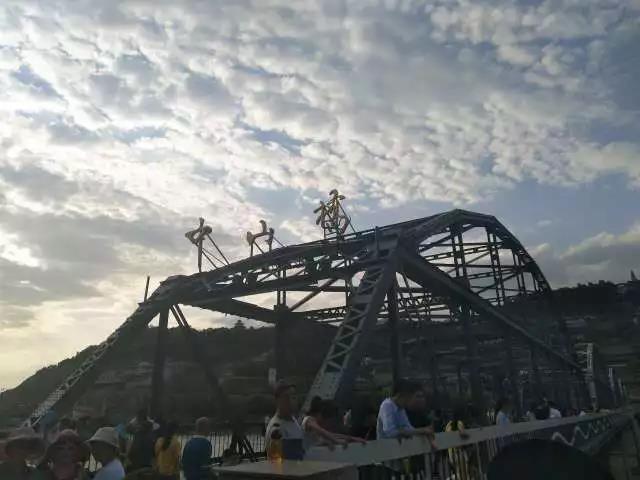 我们漫步在中山桥上,滚滚黄河横穿而过,水上游轮、羊皮筏、远处水上清真寺、水塔山公园……一边在欣赏两岸秀丽风景,一边听贺主任对这座桥及兰州的讲解,细细品味这座铁桥的沧桑感与厚重感,感受这座“西北重镇”的特色和魅力。