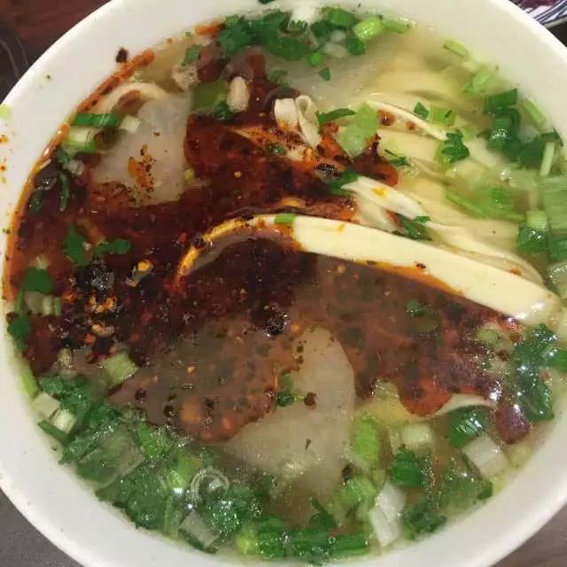 我们此行品尝的是韭叶面,面条弹滑柔韧,加上鲜美的牛肉汤汁、鲜嫩的牛肉、蒜苗香菜的清脆,配上辣椒的香味,满口的享受溢于言表,能够品尝到此等人间美味,真的是不虚此行!