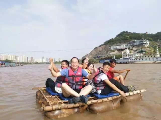 我们五人一组,乘坐羊皮筏子在黄河中顺流而下,水流缓时,需要用桨划水前行;水流急时,则任筏子顺水漂流,时不时用桨控制方向;水浪拍打筏子时,筏子摇摇晃晃,惊险刺激,真是一场别样的体验。