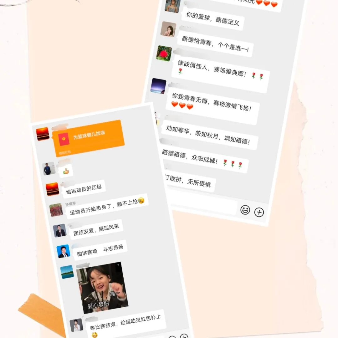 比赛间隙,贺健主任走进篮球队,为队员出谋划策,加油助威!到达现场和因故未到现场的加油团家人也纷纷通过自己的方式为路德健儿加油鼓劲!
